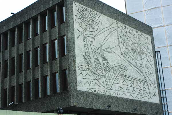 Picasso đã phác thảo 5 bức tranh tường cho cả nội thất và ngoại thất các tòa nhà. Lớn nhất là bức Ngư ông , được lắp đặt trang trọng trên mặt tiền khu nhà Y. |